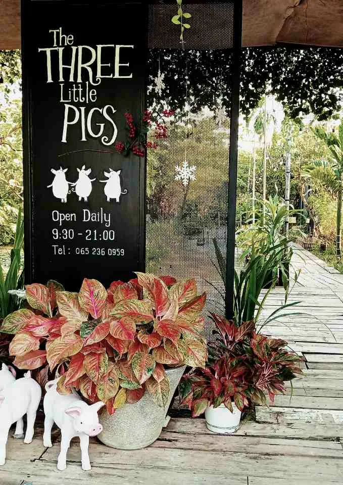 tHe tHReE LiTTle PiGs ต้องยอมรับว่าชื่อร้านเป็นสิ่งที่สำคัญมากของการทำร้านอาหาร ร้านคาเฟ่ในยุคนี้เลย เพราะชื่อร้านที่ดีนอกจากจะแสดงคาแรคเตอร์ของตัวเองได้แบบชัดเจนแล้ว ยังทำให้คนติดหูจำร้านได้อีกด้วย เหมือนร้าน คาเฟ่ The Three Little Pigs ที่ต้องยอมรับเลยว่าชื่อนี้พออ่านแล้วแปลเป็นภาษาไทย มันติดหูดีจนเราต้องอยากรู้จักร้านนี้ ร้านคาเฟ่ลูกหมูสามตัว ร้านนี้มีรีวิวอย่างไรเราจะมาเล่าให้ฟัง พิกัดของร้าน ตั้งอยู่ในซอยทองดี อำเภอสามพราน จังหวัดนครปฐม จุดสังเกตให้เราดูร้านโตโยต้าท่าจีน จากนั้นจะเห็นซอยทองดี เลี้ยวเข้ามาได้เลย เข้ามาไม่ลึกเท่าไรเจอเลยร้านเปิดให้บริการทุกวัน ไม่มีวันหยุดตั้งแต่เวลา 09.00-19.30 น. เบอร์โทรศัพท์ของร้าน 065-2360959