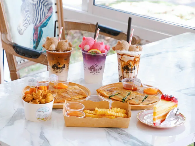 Memory House Cafe มาว่ากันเรื่องอาหารและเครื่องดื่มบ้างบอกเลยว่า เครื่องดื่มที่คุณจะต้องสั่งเลยก็คือ ช็อคโกแลตน้องหมี (หรือจะเป็นเมนูอื่นก็ได้ แต่ขอให้เพิ่มท็อปปิ้งเป็นน้องหมี) ตัวช็อคโกแลตเย็นที่เราว่ารสชาติธรรมดา ขมหวานตัดกันให้ชื่นใจ แต่ทีเด็ดอยู่ตรงที่บนแก้วจะมีน้องหมีตัวใหญ่มากนอนตะแคงรออยู่บนแก้ว อันนี้ยอมรับเลยว่าน่ารักมาก (ตัวหมีกินได้เป็นวุ้นกะทิ) แค่เห็นก็ร้องว้าวแล้ว เด็กๆ ชอบแน่นอน