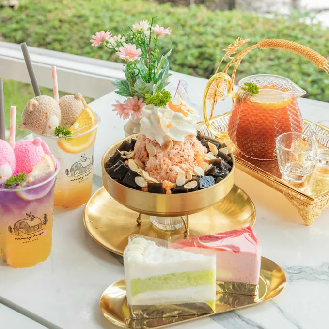 สำหรับเค้ก มีหลายตัวน่าสนใจ แต่เราขอชี้เป้าไปที่ แมดคาเดเมีย ชีสเค้ก เค้กหน้าถั่วแมดคาเดเมียที่จัดมาเต็มแบบไม่หวงของกันเลย เค้กนิ่มละมุนลิ้นมาก กินแล้วแทบจะละลายในปากได้เลย ส่วนถั่วก็สดดี ไม่ชืด ไม่แข็ง กินเคี้ยวกรุบกริบอร่อย แต่ถ้าเด็กมาด้วยอาจจะหันไปที่ บลูเบอรี่ชีสเค้ก ก็ได้เช่นกัน สรุป Memory house café เป็นคาเฟ่ที่สายถ่ายรูปต้องมาลองสักครั้ง บอกเลยว่ากดถ่ายกันจนเมื่อยมือแน่นอน ส่วนเรื่องอาหารและเครื่องดื่ม อาจจะไม่ได้ว้าวมากเรื่องรสชาติ แต่การตกแต่งจัดว่าน่าประทับใจ