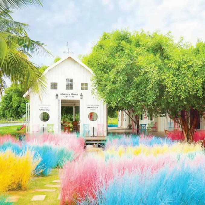 ล่าสุดที่เป็นไฮไลต์เด็ดของ Memory House Cafe ก็คือทุ่งหญ้าหลากสี โดยเค้าจะย้อมสีหญ้าให้กลายเป็นทุ่งหลากสีสันเลยทีเดียว สีแดง สีเหลือง สีชมพู สีฟ้า คือมันสวยงามมาก แถมยังมีมุมปิกนิกพร้อมกับของประกอบฉากอีกด้วย นี่คือมุมที่เราแนะนำเลยว่าห้ามพลาดเด็ดขาด เคลียร์พื้นที่ว่างในโทรศัพท์ให้พร้อมหรือ เตรียมเมมให้ดี (เราเตือนแล้วนะ)