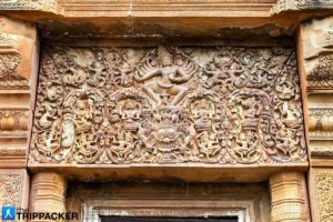 หลังจากเดินโดยรอบ อีกจุดหนึ่งที่ไม่ควรพลาดเลยก็คือ ศิลาทับหลัง ที่เดิมมีทั้งหมดสี่ชิ้น แต่ว่าตอนนี้เหลือเพียงแค่ชิ้นเดียวที่ปราสาทนี้ เนื่องจากว่า อีกสองชิ้นถูกนำไปเก็บไว้ที่พิพิธภัณฑ์แห่งชาติสุรินทร์ และอีกชิ้นถูกนำไปเก็บไว้ทีพิพิธภัณฑ์แห่งชาติพิมาย ส่วนแผ่นที่เหลือ เป็นลวดลาย ศิวะนาฏราช อธิบายความก็คือ เป็นรูปพระศิวะ ในท่วงท่ารำอ่อนช้อย และมีเทพองค์อื่นร่วมขับขานด้วย แม้ว่าเราจะเห็นเพียงแค่แผ่นเดียว แต่ว่าแผ่นนี้ก็ถือว่ามีความสมบูรณ์ สวย และยังคงสภาพเดิมได้มากที่สุดแผ่นหนึ่งในไทยเลย เราเห็นแล้วรู้สึกได้ถึงพลังงานบางอย่าง ว่างั้นเลย