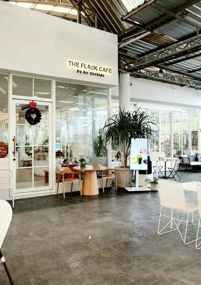 คาเฟ่ The Flask Café (เดอะ ฟลาสค์ ) หากจะให้เรานิยามคาแรกเตอร์ เรามองว่านี่คือสรวงสวรรค์ของคนชอบปลูกกล้วยไม้และแคคตัสอย่างมาก เพราะว่าที่ร้าน The Flask Cafe by Air Orchids จะตกแต่งด้วยพันธุ์กล้วยไม้มากมาย และ ต้นแคคตัสที่ตั้งเรียงรายเอาไว้ ทั้งให้เราชมอย่างเดียวและขายด้วยเป็นของที่ระลึก รวมถึงเครื่องมือในการช่วยปลูกแคคตัสอีกต่างหาก เรามองว่าคนที่ชอบไม้ประดับทั้งสองสายพันธุ์นี้เดินดูทั้งวันก็ไม่เบื่อแน่นอน